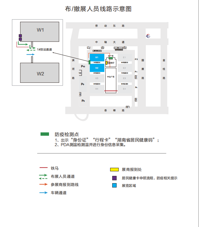 健康检查(口罩、身份证、参展证、健康码、行程卡、人员分类管理要求。若未带身份证,需办理临时身份证明)